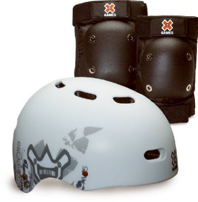 X-Games, Child Multi-Sport Helmet Value Pack, Old, Slick Shape Designed For The Ultimate Fit, Hard Shell Construction For Multi-Sport Protection, Top & Rear Vents Keep Head Cool, CPSC & ASTM Approved & High Impact Elbow & Knee Pads For Added Protection, Contains 1 Small 20"-21-1/4" & 1 Of Medium 21"-22", Clamshell Packaging, Ages 5-8 Years.